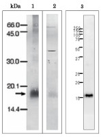 Host: Rabbit Clonality: Polyclonal Purity: Total IgG. Protein A purified in PBS, 50% glycerol. Filter sterilized. Format: Liquid at 4 mg/ml. Quantity: 200 µg Storage: Store at -20°C; once reconstituted make aliquots to avoid repeated freeze-thaw cycles. Please remember to spin the tubes briefly prior to opening them to avoid any losses that might occur from material adhering to the cap or sides of the tube. Tested applications: ELISA (ELISA), Immunofluorescence (IF), Western blot (WB) Recommended dilution: 1: 500 - 1: 2000 (WB) Expected | apparent MW: 18 kDa - Reactivity