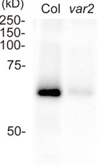 Additional information (application): Both FtsH2 (VAR2) and FtsH8 share high degree of homology therefore this antibody recognizes both proteins - Background