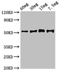 Host: Rabbit Clonality: Polyclonal Purity: Total IgG. Protein G purified. Format: Liquid Quantity: 50 µg Storage: Store at -20°C or -80°C, avoid repeated freeze-thaw cycles. Make aliquots to avoid repeated freeze-thaw cycles. Please remember to spin the tubes briefly prior to opening them to avoid any losses that might occur from material adhering to the cap or sides of the tube. Tested applications: ELISA (ELISA), Western blot (WB) Recommended dilution: 1 : 5000 (WB) Expected | apparent MW: 37 kDa - Reactivity
