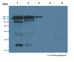 Additional bands are a result of high protein load/well and concentrated primary antibody, which is suggested in our protocol, as it is easier to optimize it, once it is confirmed that the antibody is recognizing correct target protein.